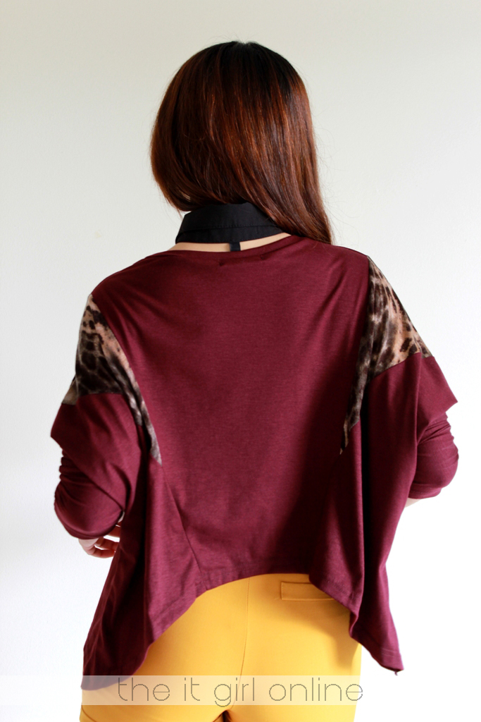 Leopard Cut-out Shoulders Slouchy Top comes in: